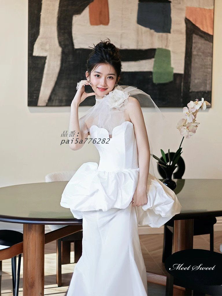 ウェディングドレス ロングドレス マーメイドライン ノースリーブ ベアトップ 二次会 結婚式 前撮り ウエディングドレス サテン ブライダル 花嫁 挙式 pai5a776282 WWW_NICORILABO_COM