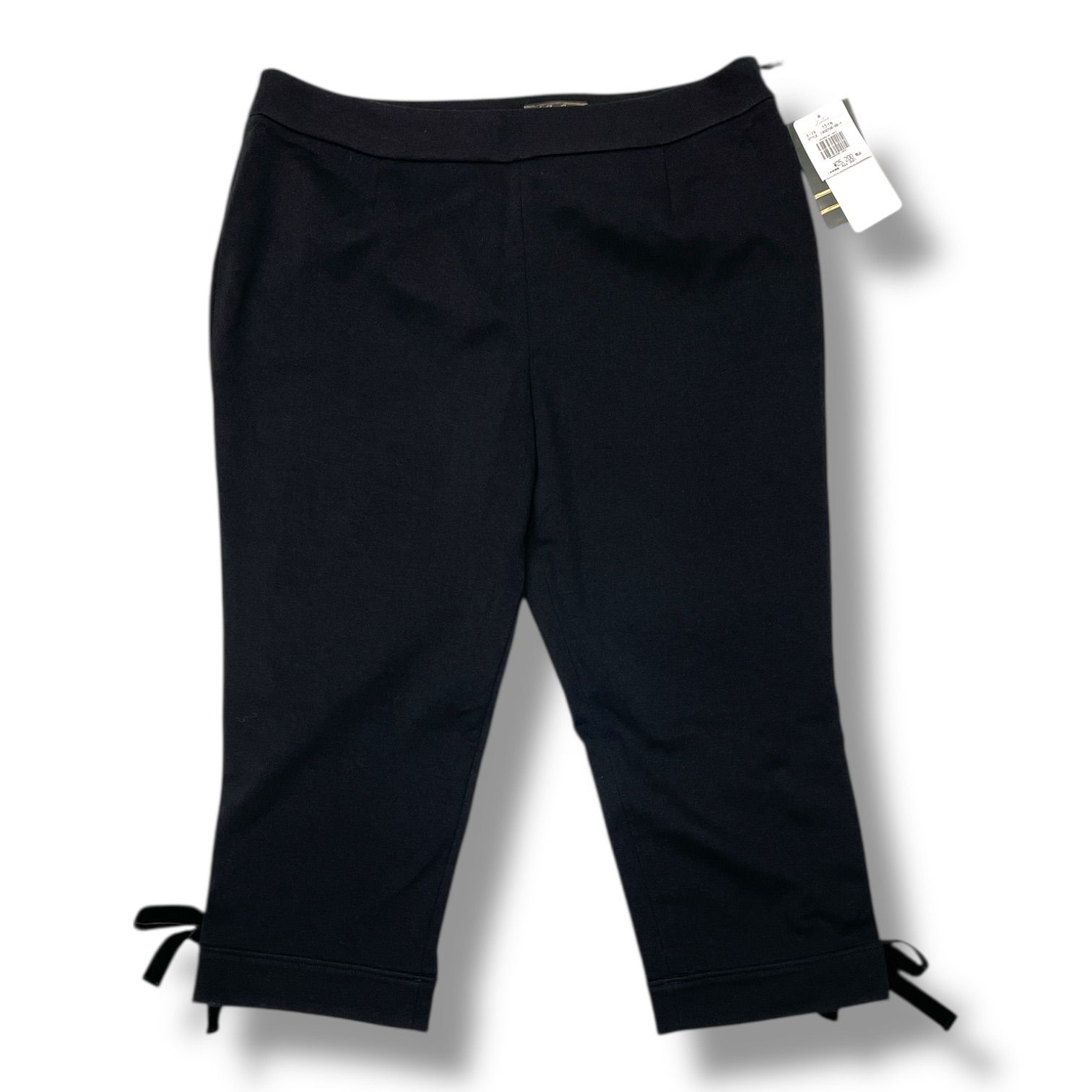♥ タグ付き Leilian レリアン ストレッチパンツ クロップドパンツ 七部丈 リボン サイドファスナー 大きいサイズ JS-1302706 黒 ブラック 15サイズ レディース 通年 ゴーゴー古着マルイファミリー溝口店 18 No.110 WWW_NICORILABO_COM
