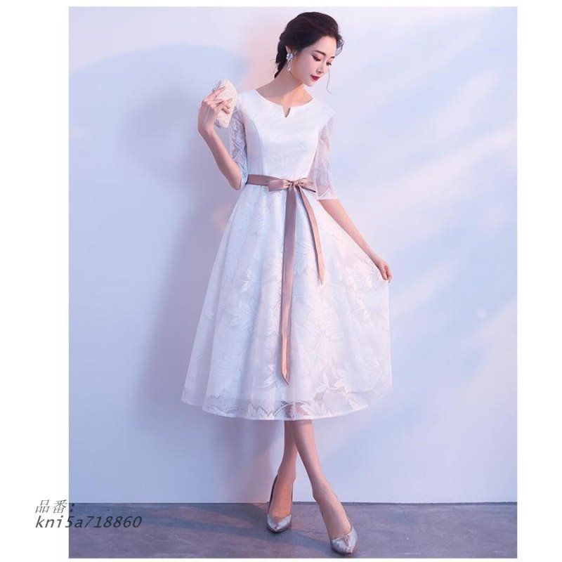 袖あり ミモレドレス パーティードレス 結婚式ワンピース 二次会 ウエディングドレス 演奏会 謝恩会 お呼ばれ 大きいサイズ お食事会 発表会 成人式 披露宴 kni5a718860 WWW_NICORILABO_COM