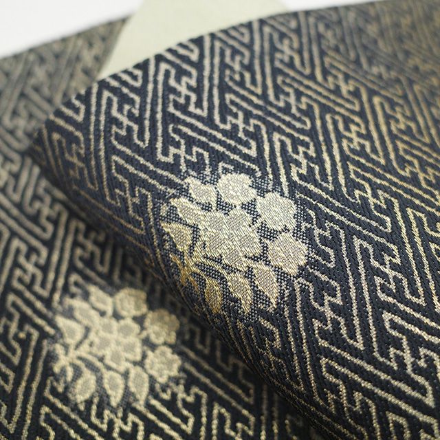 • 黒グレー 天平唐花文錦