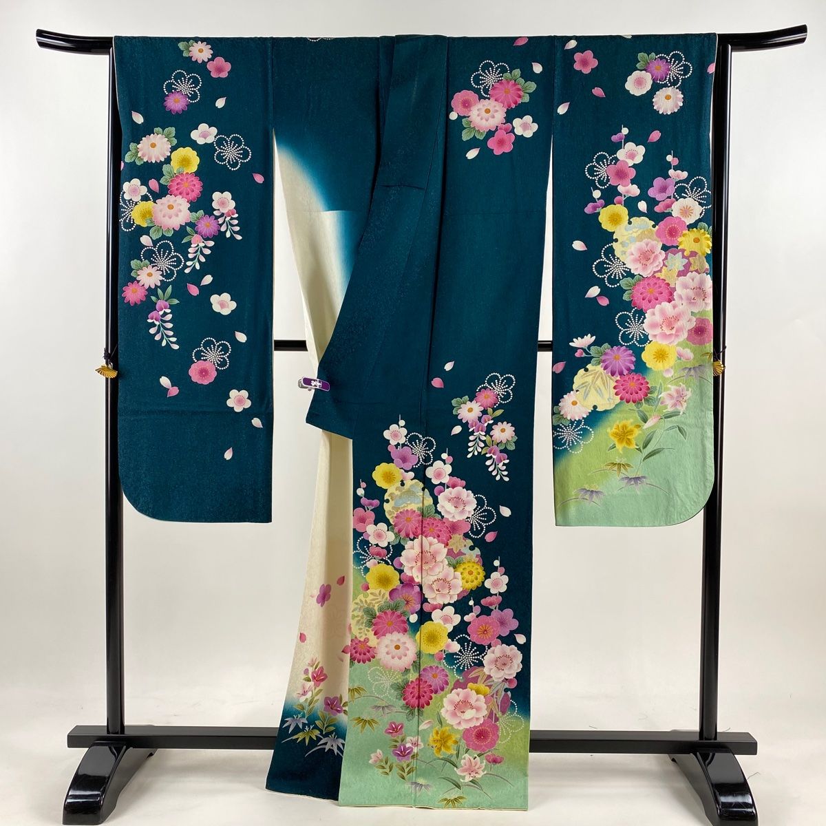 振袖 身丈166cm 裄丈66.5cm M 袷 桜 雪輪 銀通し 金糸 深緑 正絹の検索結果