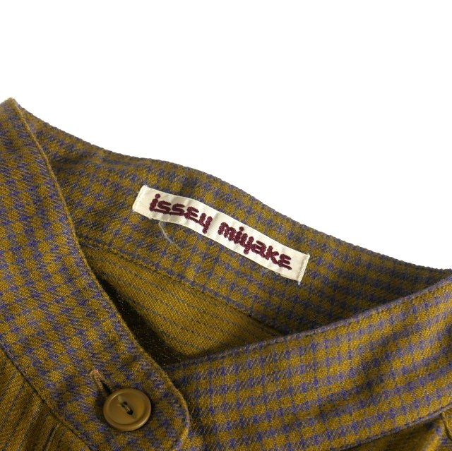 イッセイミヤケ ISSEY MIYAKE 70s ヴィンテージ チェック柄 バンドカラー ロングシャツワンピース ドレス 長袖 9 カーキ N24640の検索結果