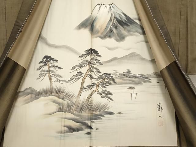 平和屋着物#男性 長羽織 黒紋付 羽裏 人物風景 正絹 BAAU0031gt