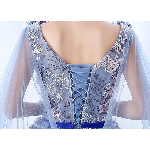 ブルー 演奏会ドレス ノースリーブ 編み上げ Aライン ドレス 発表会 演出服 ステージ衣装 ロングドレス イブニングドレス 二次会ドレス WWW_NICORILABO_COM