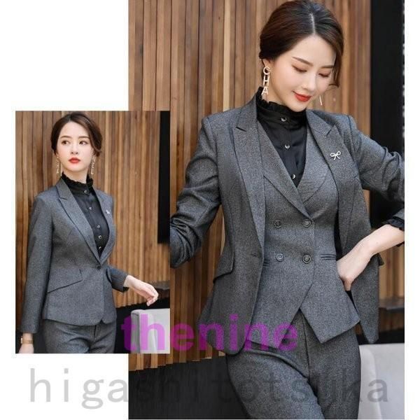 スリーピース レディース スーツ フォーマル パンツスーツ 大きいサイズ 無地 長袖 ビジネススーツ 結婚式 二次会 OL女性 通勤オフ min WWW_NICORILABO_COM