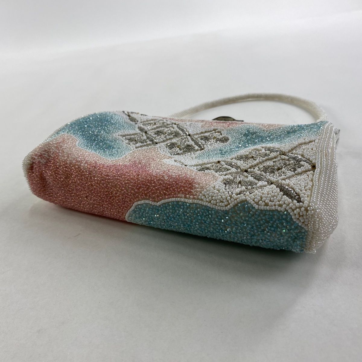和装バッグ 秀品 ビーズバッグ フォーマル 花火し 霞 銀糸 白 ビーズ 和装小物の検索結果