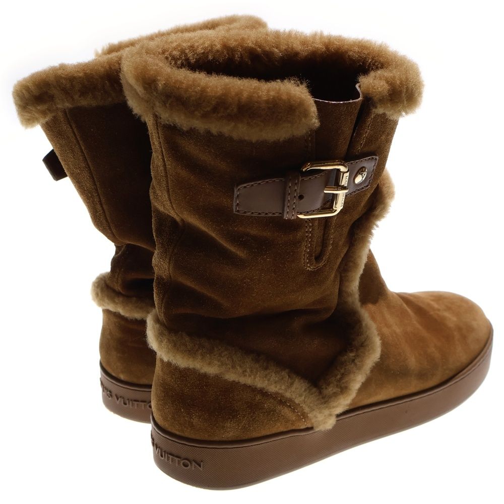 LOUIS VUITTON ルイヴィトン ソールロゴ スエードレザー ベルトデザイン ボアライニング ムートン ショートブーツ ハイカットシューズ ゴールド金具 ブラウン レディース WWW_NICORILABO_COM