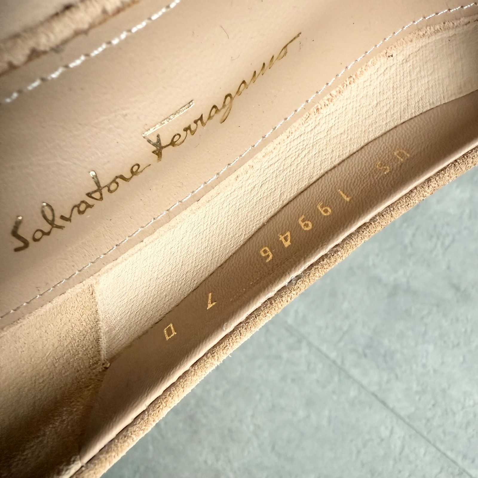 SalvatoreFerragamo サルヴァトーレフェラガモ ガンチーニ スエードパンプス 7D ベージュ 24cm ダブルガンチーニ WWW_NICORILABO_COM