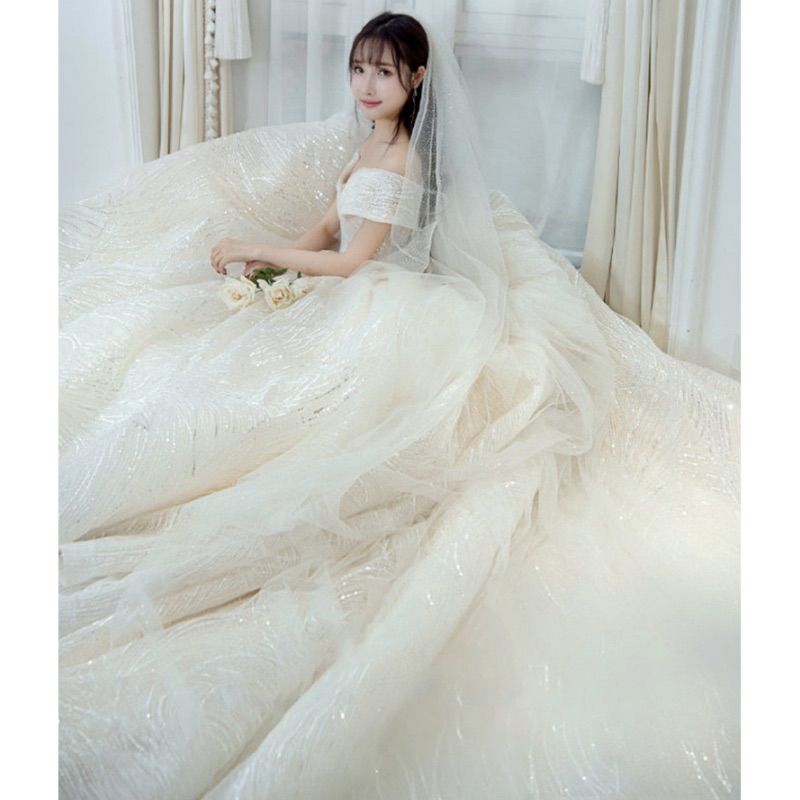 即日発送 ロングトレーン ウェディングドレス L オフショルダー 豪華刺繍 ビジュー チュールドレス 結婚式 披露宴 前撮り ロケーション撮影 花嫁ドレス プリンセスライン 大人可愛い 感 pipsセレクトの検索結果