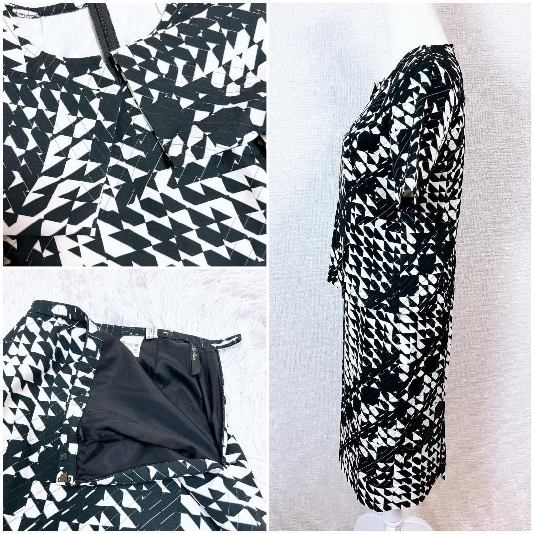 M sGRACY スカートセットアップ ベロア襟 38 白黒水色 千鳥格子
