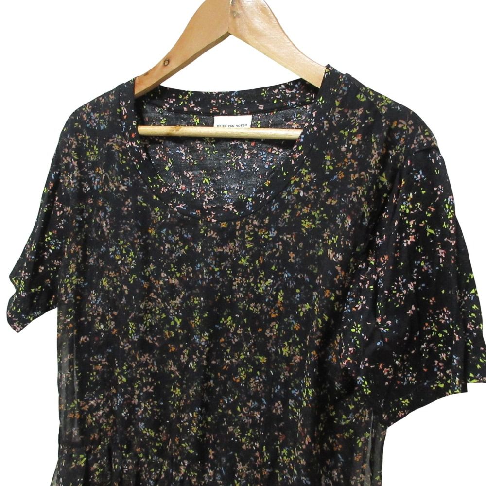 Dries Van Noten ドリスヴァンノッテン シルク ピクセルプリント シアー 半袖 ブラウス 38 ブラック レディース 古着