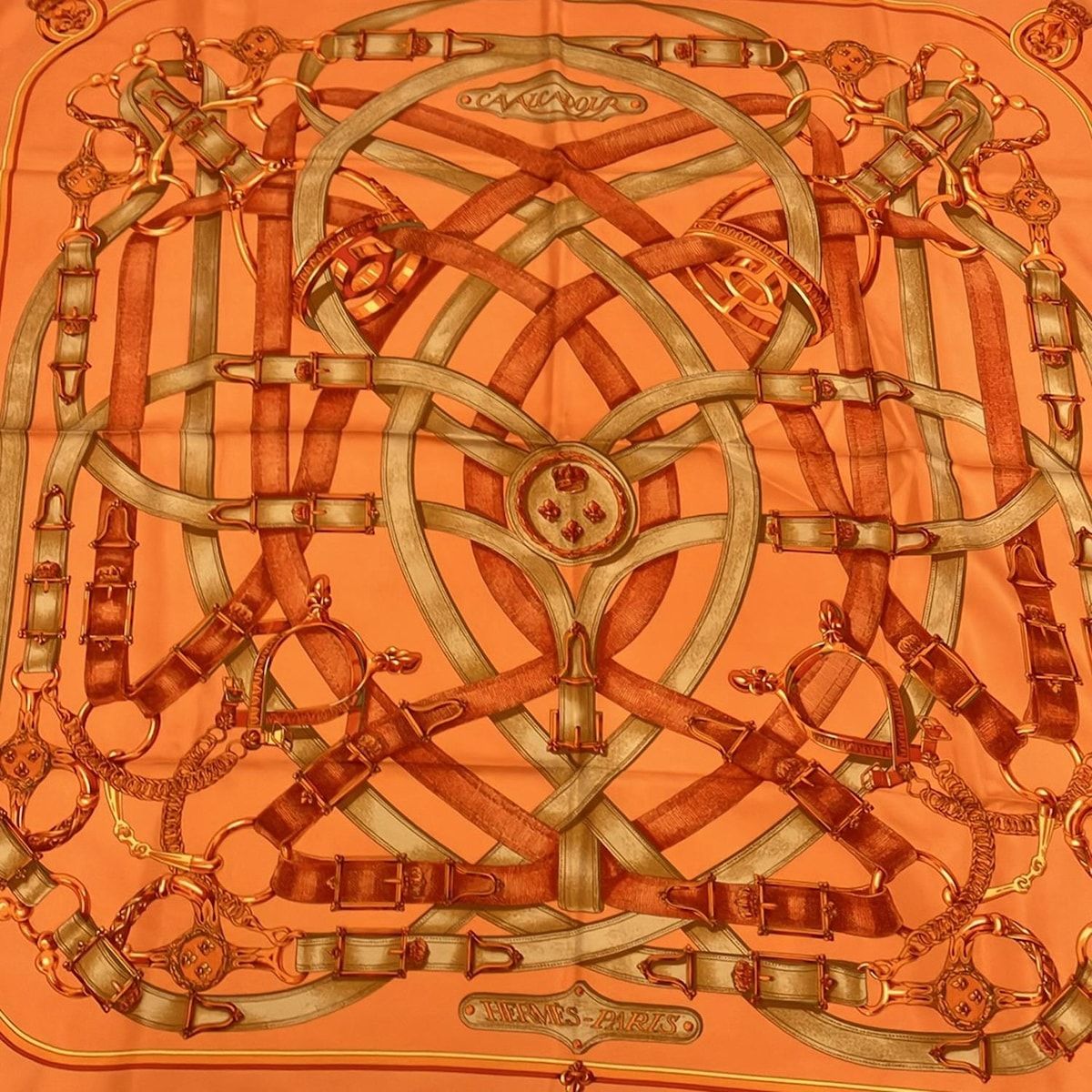 HERMES エルメス スカーフ カレ90 オレンジ×ブラウン×マルチ CAVALCADOIRの検索結果