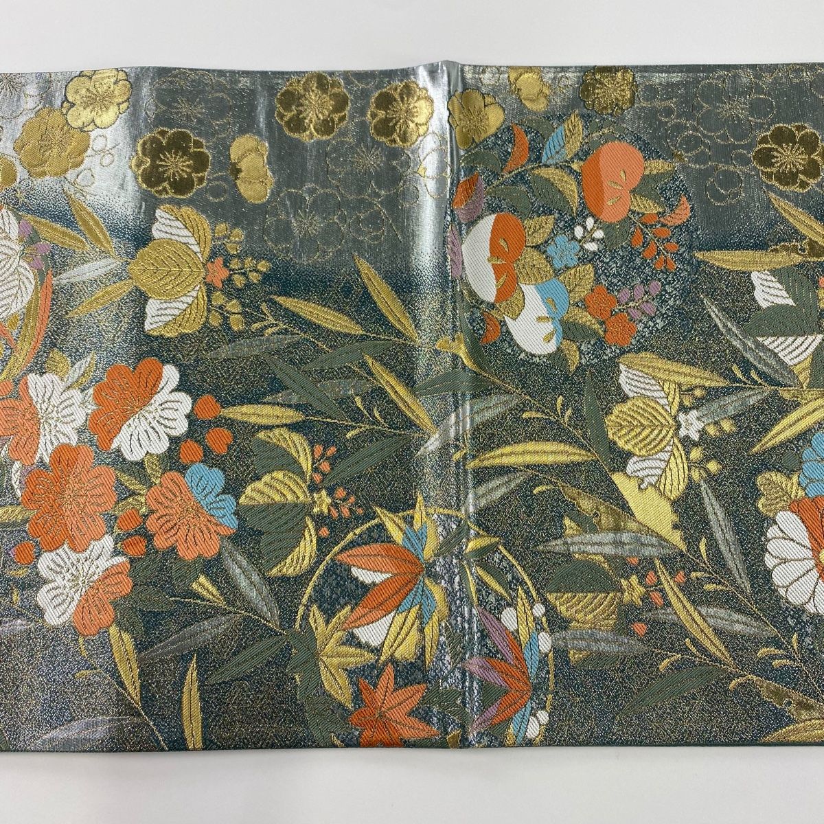 袋帯 秀品 菊 桐 箔 金糸 灰色 六通 正絹 WWW_NICORILABO_COM