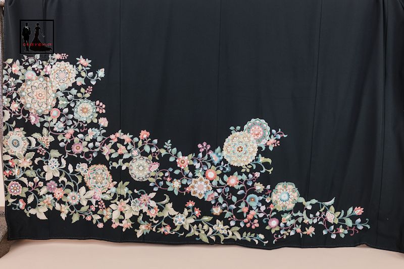フォーマル衣装 広幅 15~19号 販売 クラレナの 礼装 結婚式 家紋 丸に橘 華紋 唐花 正絹 黒留袖 正絹 袋帯 長襦袢 化繊 3点セット cl_kimono2621 品 リサイクル 和装 着物 女性 留袖 WWW_NICORILABO_COM
