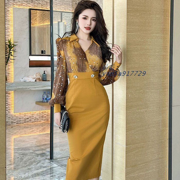 襟付き長袖ブラウス風トップ ミモレ丈タイトワンピース 黄 キャバ スナック レディース 服 韓国 yan5a917729の検索結果