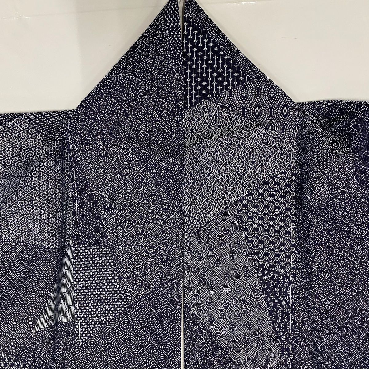 小紋 身丈156cm 裄丈62cm S 袷 寄せ柄 小花 濃紺 正絹 名品の検索結果