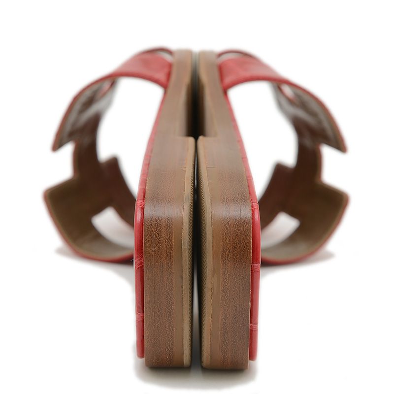 エルメス オラン フラットサンダル レザー アリゲーター レッド 38 WWW_NICORILABO_COM