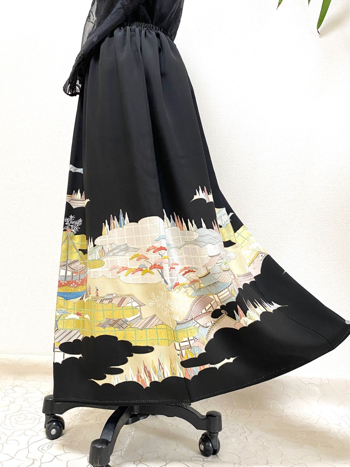 大人可愛いセレブ着物スカートフリーサイズ1点物黒留袖着物リメイクウエストゴムロングスカートフリーサイズ送料込みハンドメイドNO.5771の検索結果