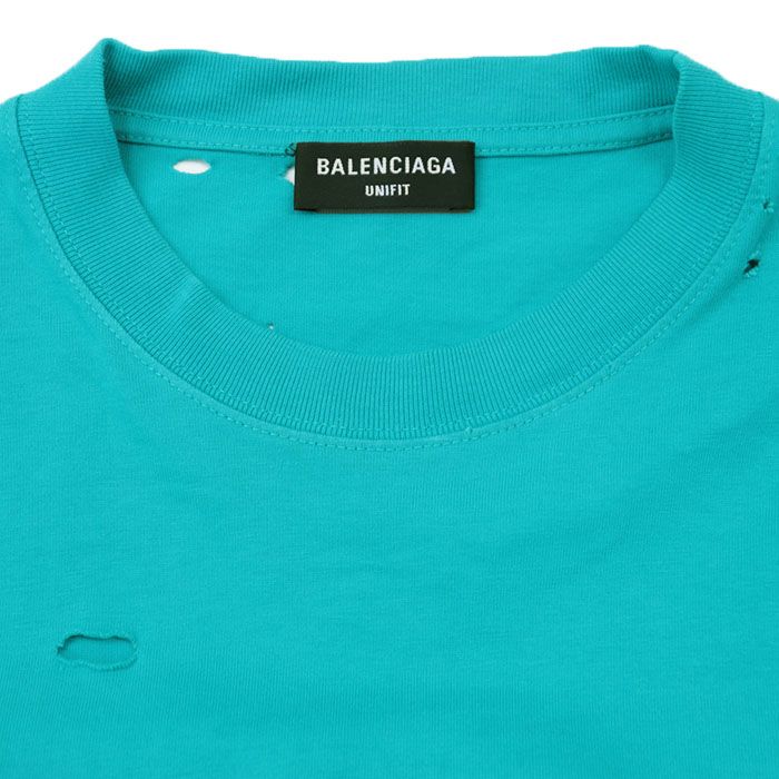 BALENCIAGA バレンシアガ 半袖Tシャツ 2021年製 デストロイ ダメージ クラックロゴプリント ビッグシルエット コットン カットソー トップス UNIFIT メンズ レディース ユニセックス サイズ M ターコイズ ポルトガル製 WWW_NICORILABO_COM