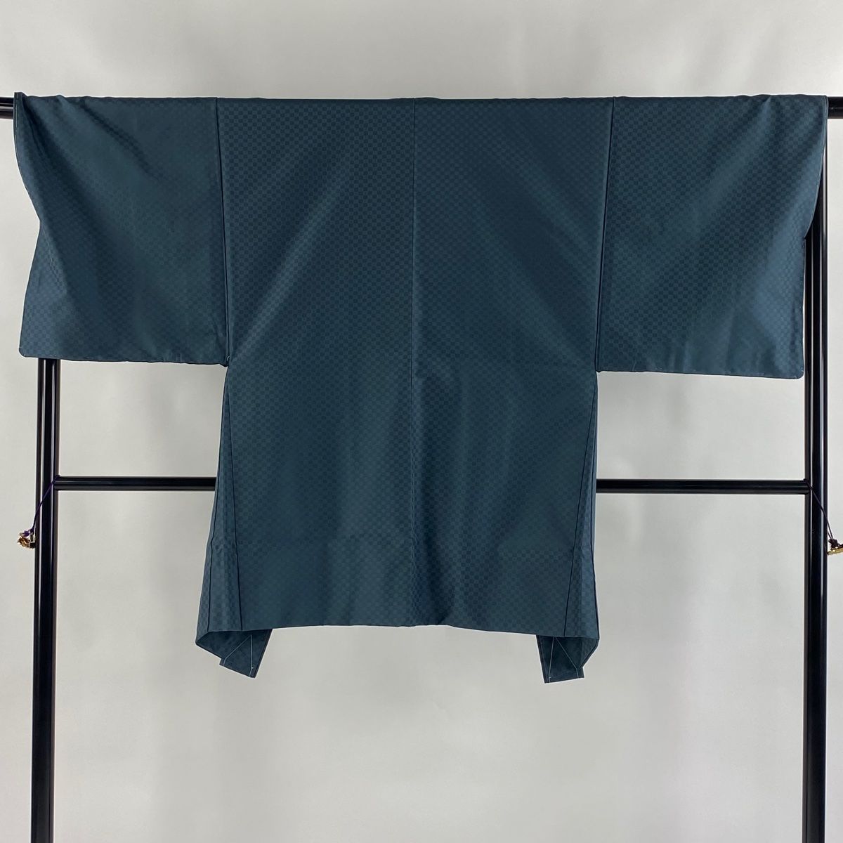 男着物 身丈136cm 裄丈68cm S 袷 草木染 紬地 アンサンブル 市松 地紋 深緑 正絹 秀品の検索結果