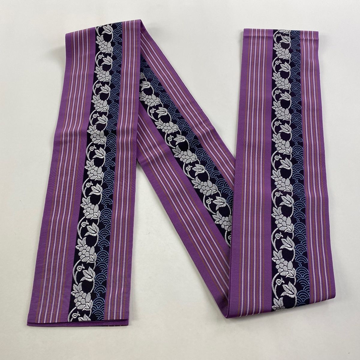 半幅帯 秀品 博多織 花唐草 縞 紫 正絹 WWW_NICORILABO_COM
