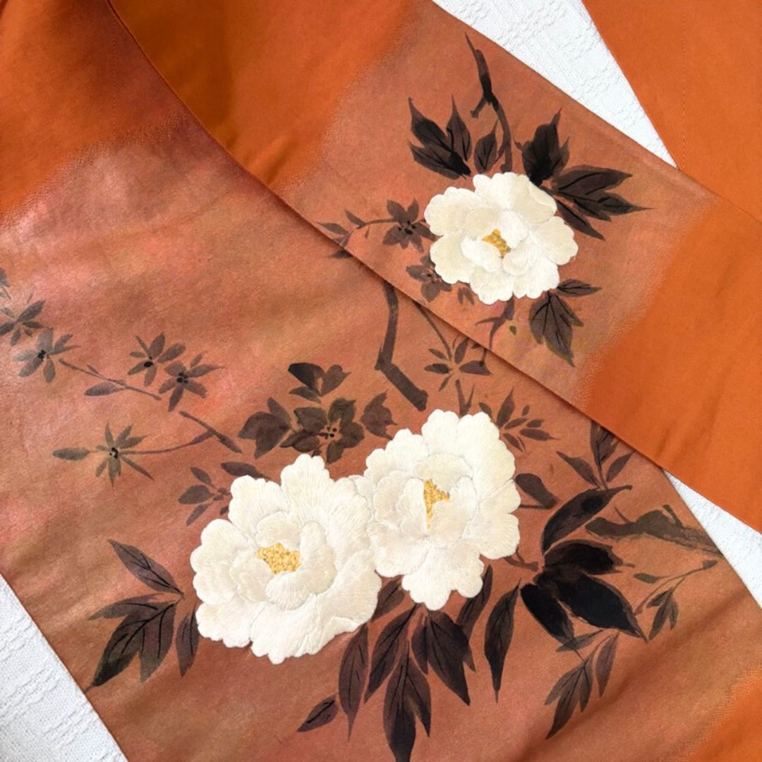 平和屋着物●上質な色無地 花唐草地紋 朽葉色 反端付き 正絹 DAAY5014ud