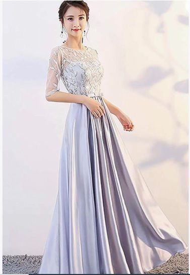 パーティードレス ロング丈 演奏会 袖付き ドレス 大人 ピアノ 発表会 成人式 同窓会 結婚式 Aライン ステージドレス 編み上げタイプ 二次会 忘年会 上品 代