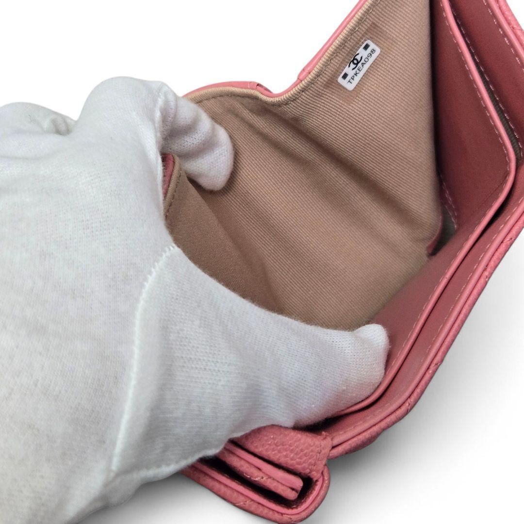 ♥ランク CHANEL シャネル マトラッセ キャビアスキンコンパクトウォレット ピンク 三つ折り財布 Wホックの検索結果