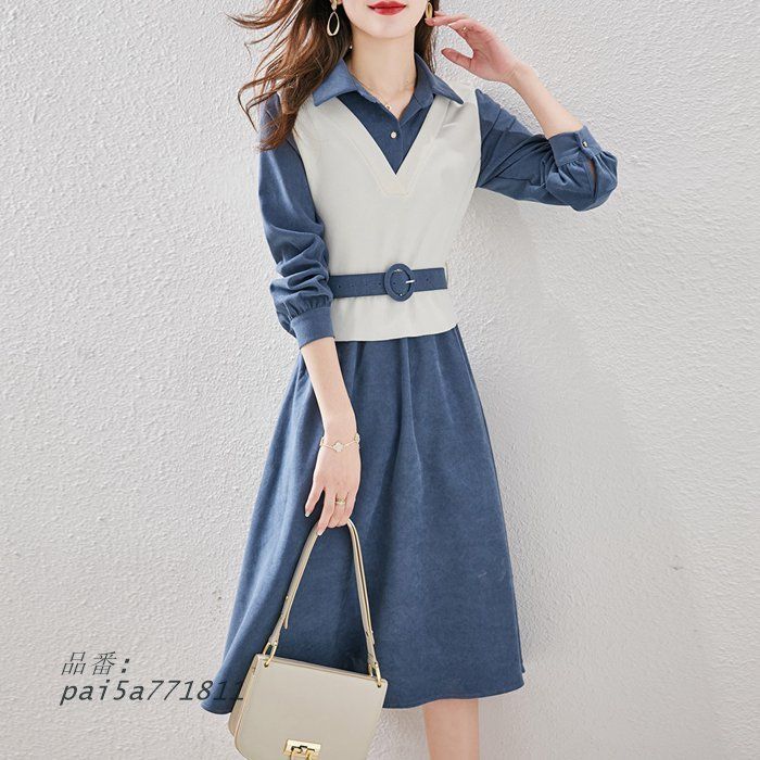 ワンピース レディース ニットワンピ 切り替え シャツワンピース 長袖 ベルト付き 秋 春 きれいめ お呼 無地 Aライン 膝丈 体型カバー pai5a771811 WWW_NICORILABO_COM