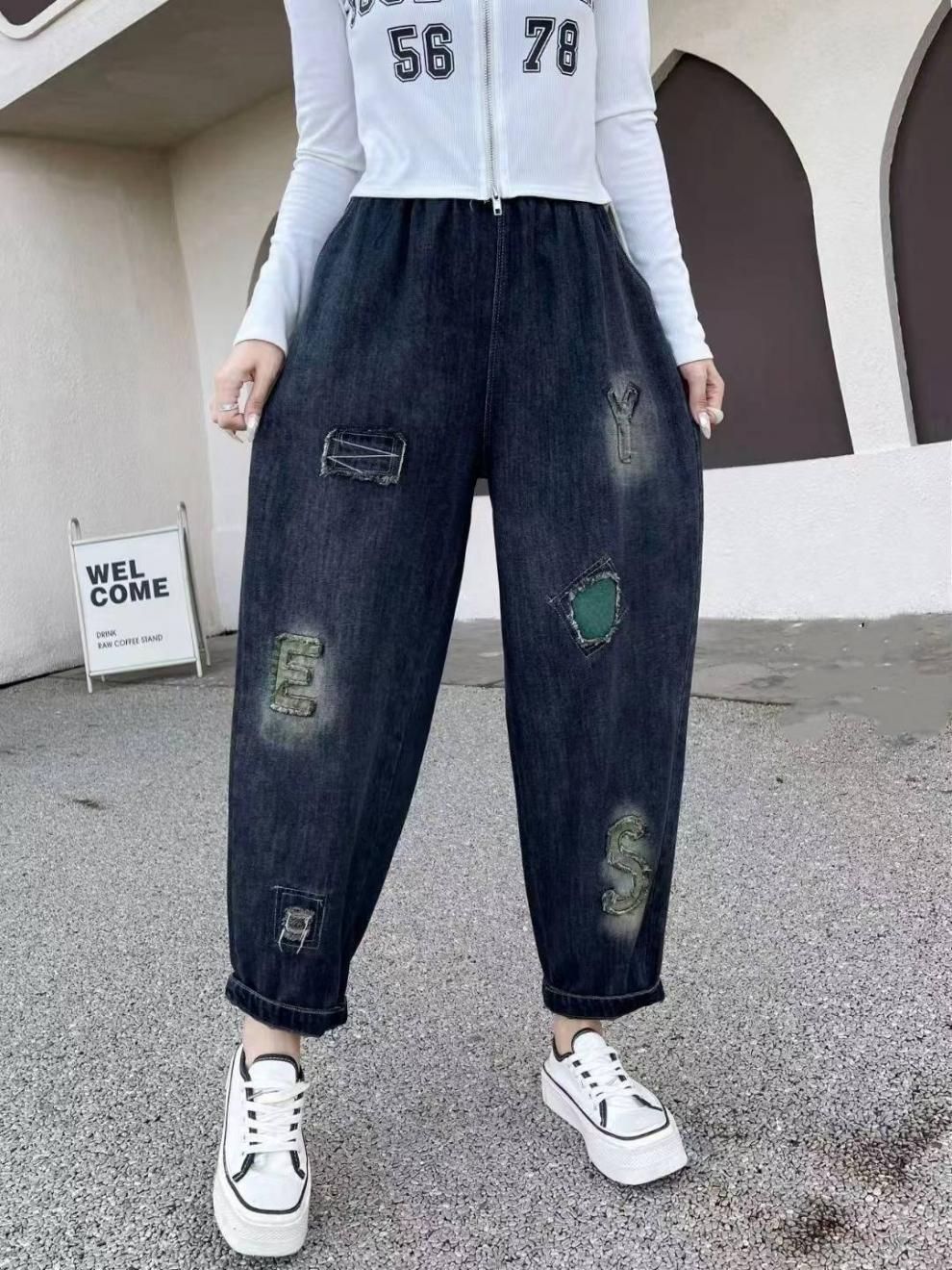 デニムパンツ レディース テーパードパンツ ボトムス ジーパン ウエストゴム 森ガール 無地 ズボン 柔らかい ゆったり ダメージ オシャレ カジュアル ファッション jdFB252 WWW_NICORILABO_COM