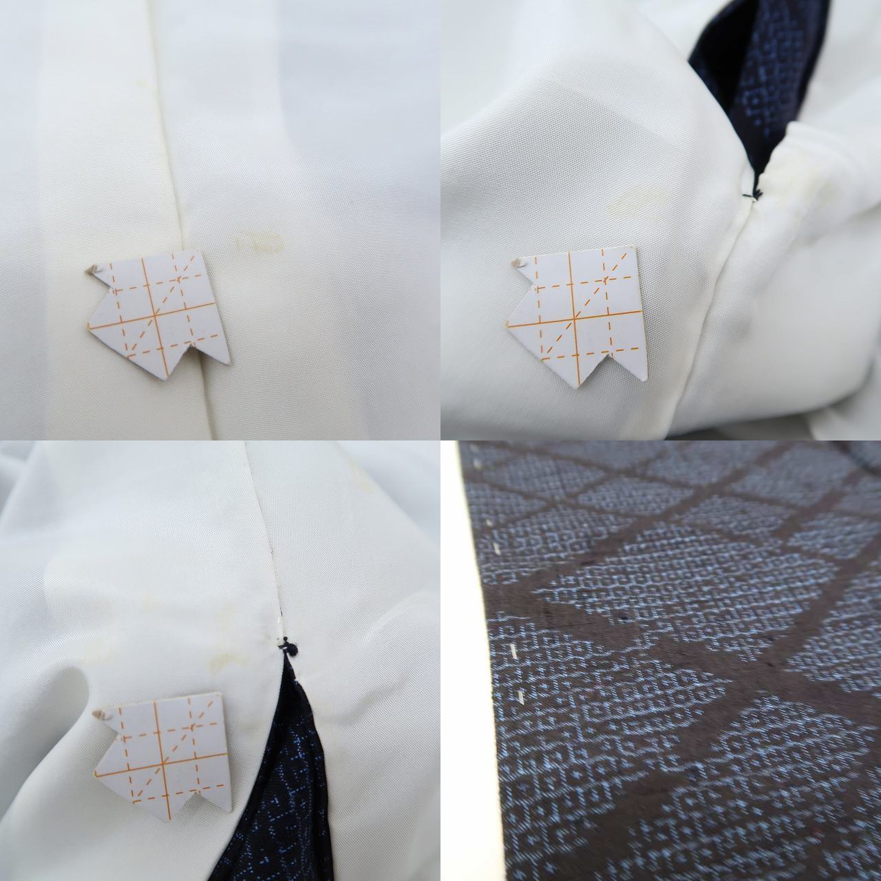 本場結城紬 結城玉紬 結織苑 証紙付 100亀甲 紺鉄色 しつけ糸 K-5438