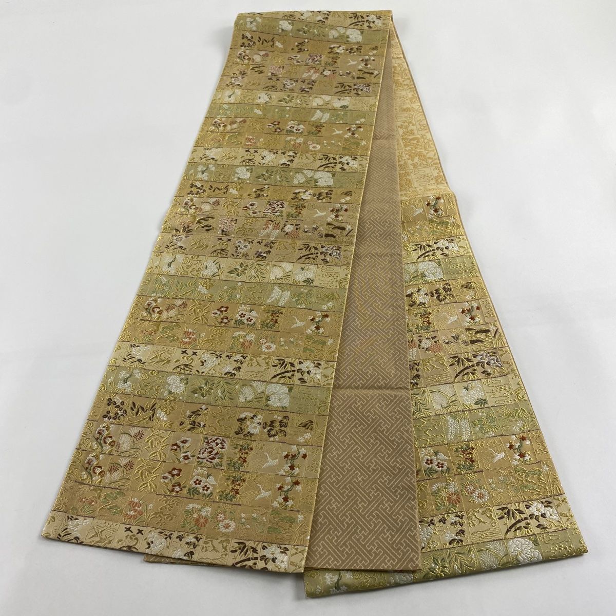 袋帯 名品 草花 鳥 金糸 ベージュ 六通 正絹 WWW_NICORILABO_COM
