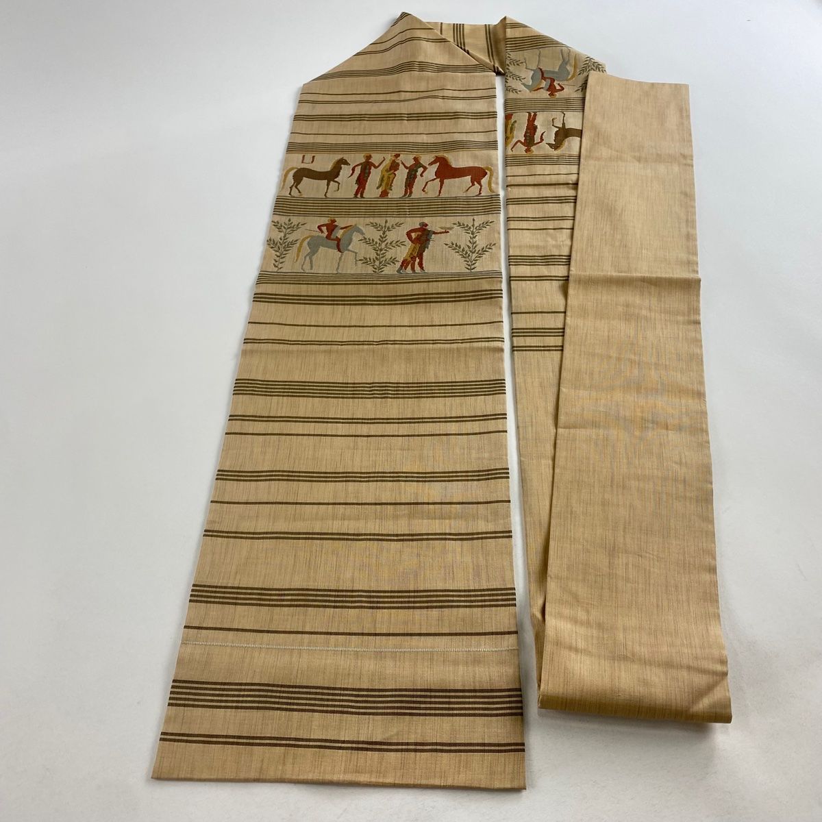名古屋帯 秀品 紬地 人物 馬 薄茶色 正絹の検索結果