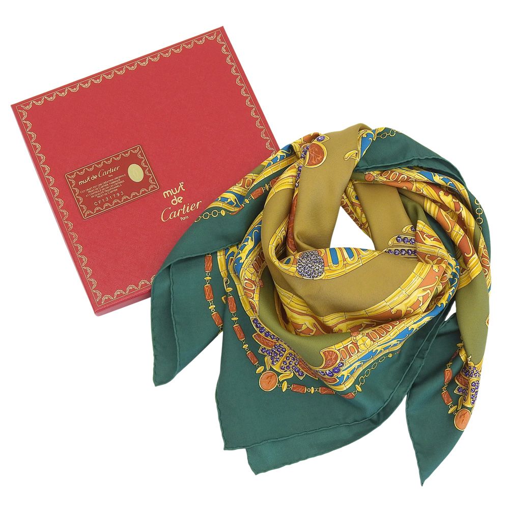 超 カルティエ CARTIER 90年代 ヴィンテージ マストドゥ カルティエ パンテール スカラベ ビジューシルク100% スカーフ 超 ほぼ♥ WWW_NICORILABO_COM