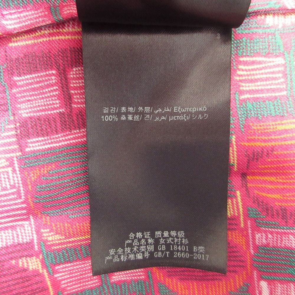 ♥ CAROLINA HERRERA キャロライナヘレラ エスニック ロゴプリント シルクブラウス L マルチカラー レディース 古着 WWW_NICORILABO_COM