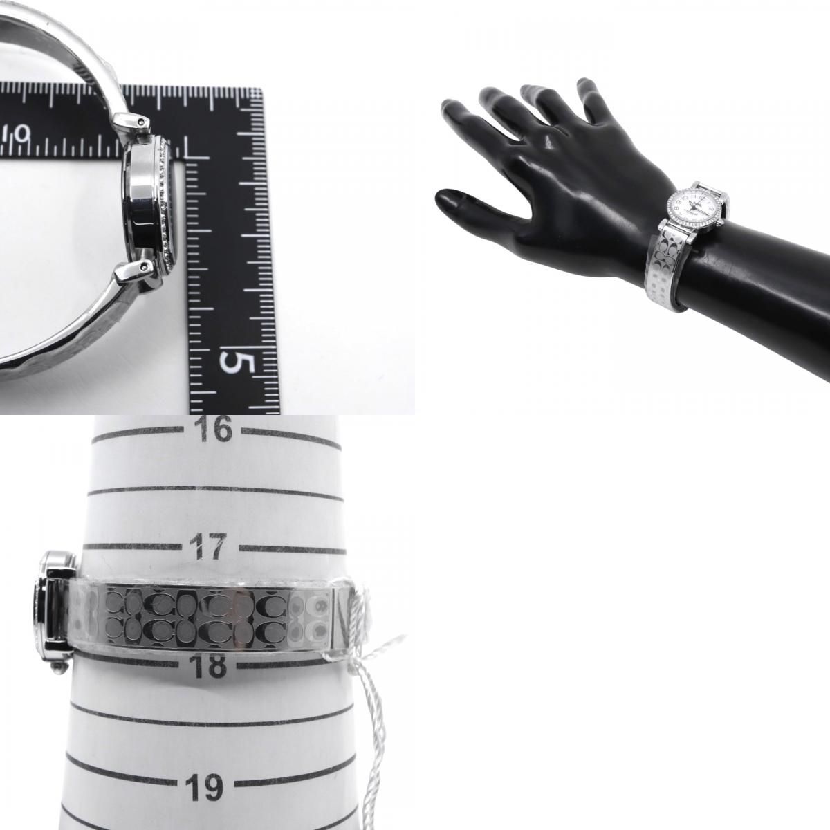 ほぼ 電池交換済 コーチ COACH 腕時計 CA.66.7.95.1489S レディース クオーツ アナログ ラウンド シルバー ラインストーンベゼル シグネチャーブレスレット エレガント フェミニン ドレスウォッチ クリーニング済 G WWW_NICORILABO_COM