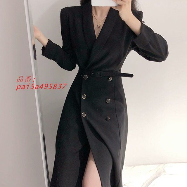 ワンピース 長袖 ジャケット ロング ミモレ丈 襟付き 春 ワンピース 春 秋 ワンピース Vネック 無地 ベルト付き きれいめ シンプル 白黒 ワンピースコート pai5a495837 WWW_NICORILABO_COM
