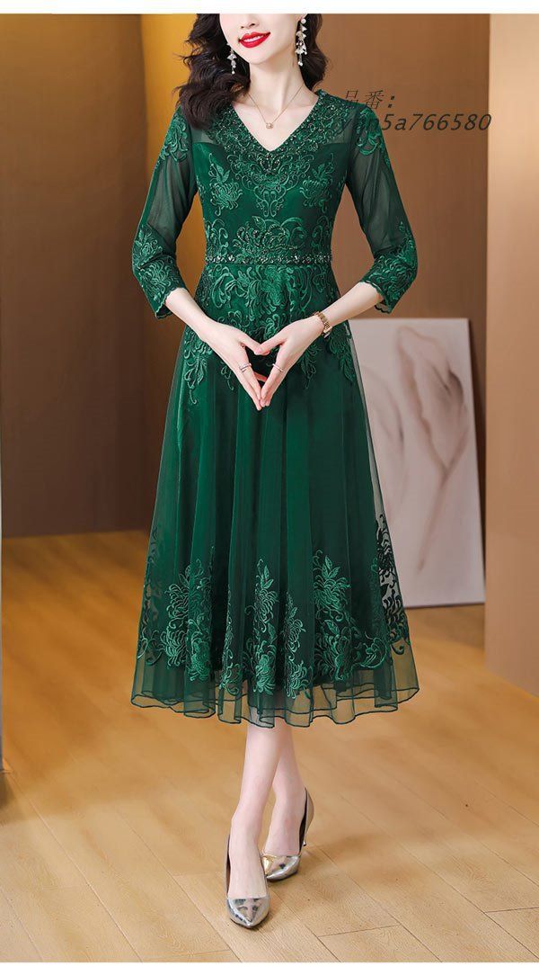 刺繍 パーティードレス レディース 総レース ワンピース ミモレ丈 グリーン 演奏会 ドレス 七分袖結婚式 二次会 ワンピース yan5a766580 WWW_NICORILABO_COM