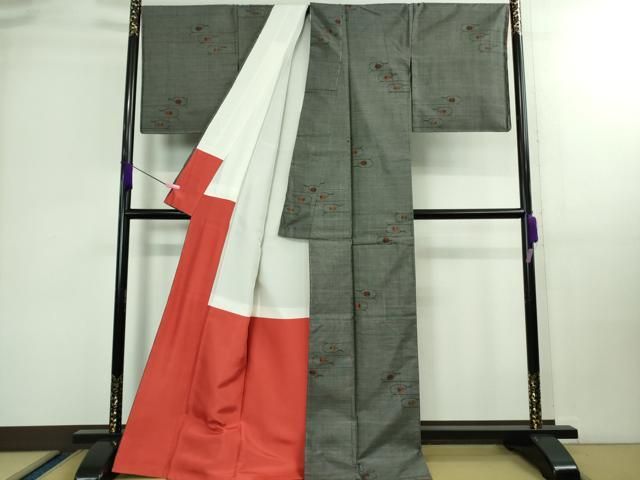 平和屋着物 上 手描染作家 安藤松岳 紬 枝花文 八掛 五代目 諏訪好風 反端付き DZAA9840kh5
