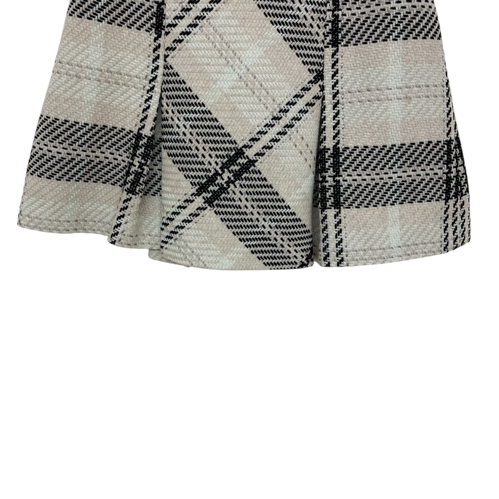 ドゥロワー Drawer スカート プリーツスカート ミモレ丈 ブラウン チェック柄 ウール100% シルク 36 M 9号 レディース S5W261