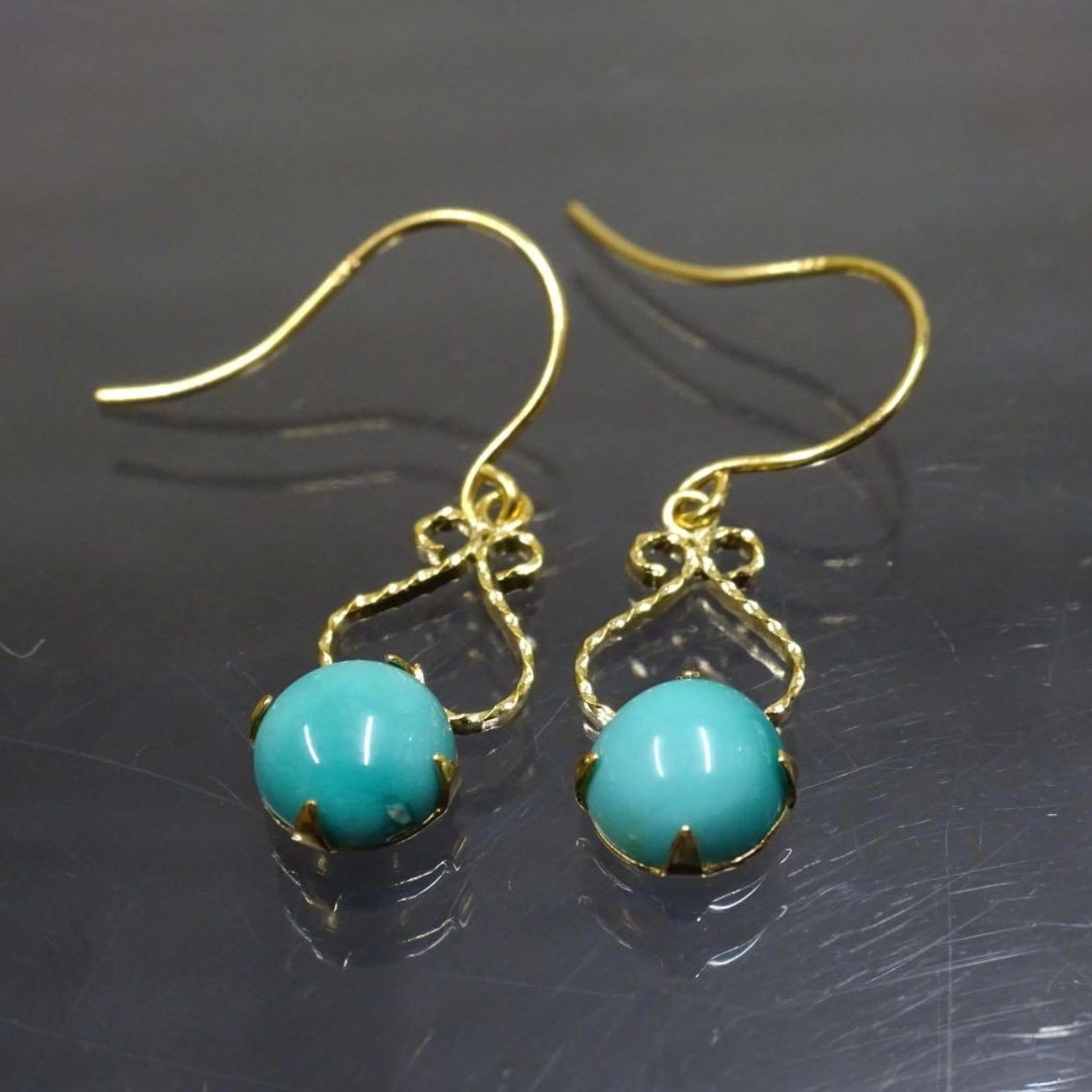 18金 K18 ゴールド GOLD 750 天然ターコイズ ぶら下がり ハート デザイン ピアス 両耳 総重量約0.63g ジュエリー 宝石 天然石 貴金属 レディース 普段使い WWW_NICORILABO_COM