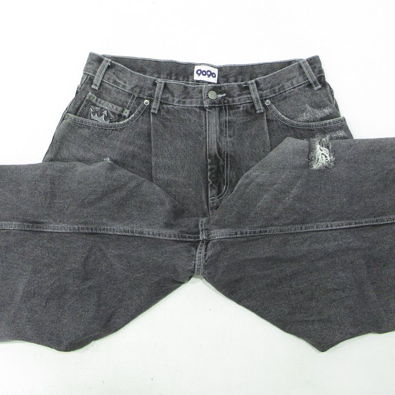 三重本店 9090 ナインティナインティ King Logo Buggy Denim Pants キングロゴバギーデニムパンツ 加工ジップフライデニムパンツ ダメージ加工 NN1270 ブラック サイズ XL 107の検索結果