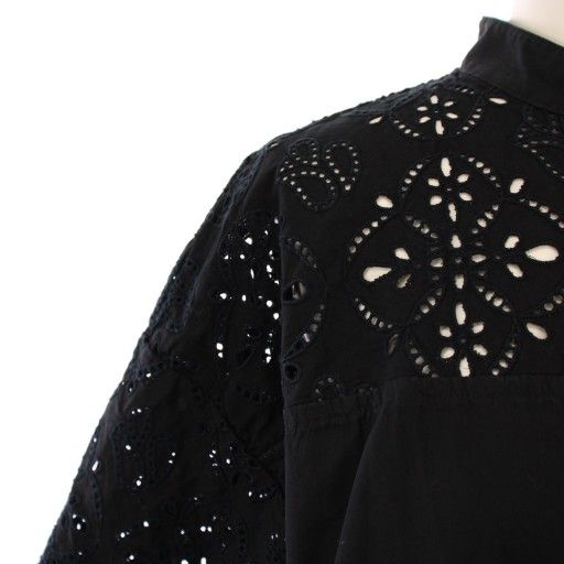 ティッカ TICCA シャツワンピース ミモレ ロング 半袖 バンドカラー カットワーク 刺繍 ワンカラー F 黒 ブラック |BB WWW_NICORILABO_COM