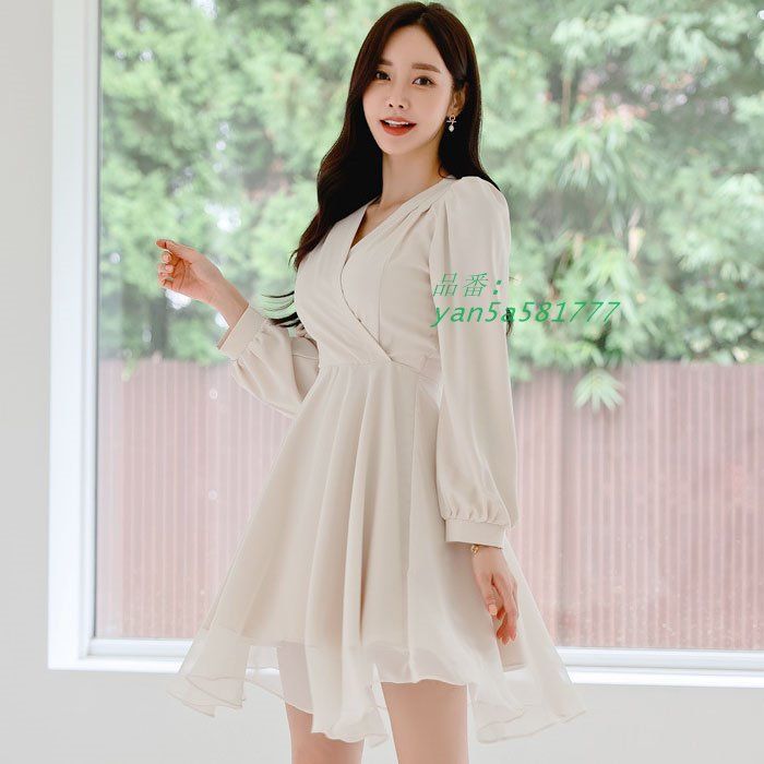 ボリューム長袖カシュクール胸元 ショートフ ワンピース ベージュ 大人 カジュアル 上品 韓国 ファッション 服 yan5a581777の検索結果