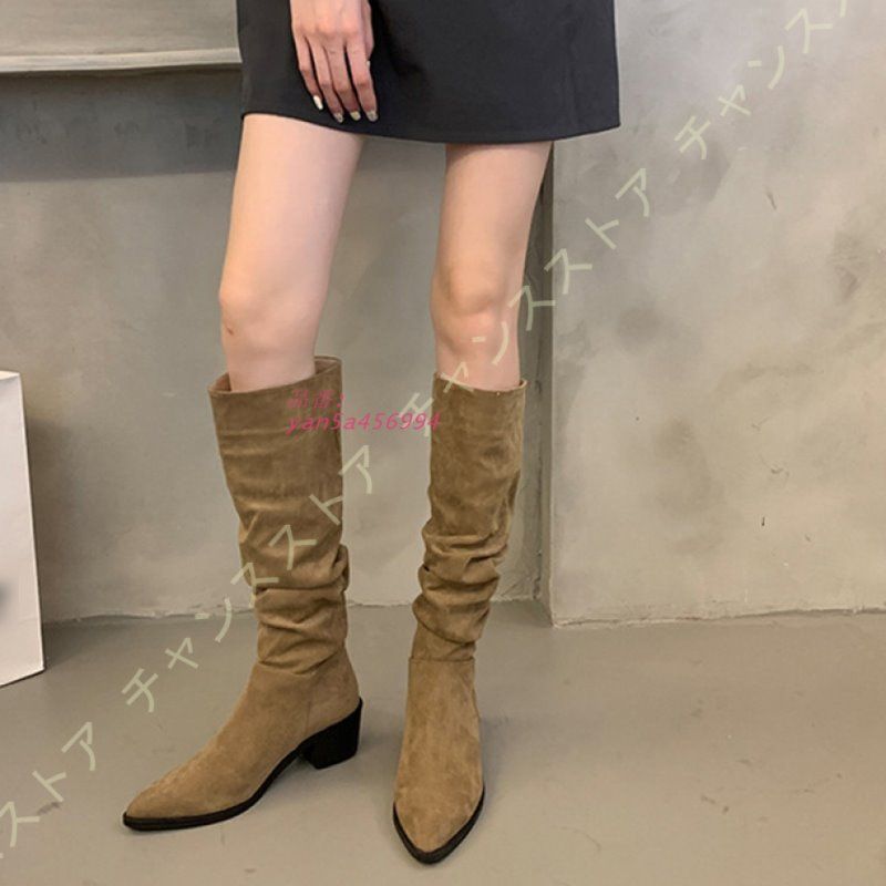 ウエスタンブーツ レディース 太ヒール くしゅくしゅブーツ ローヒール エンジニアブーツ 秋 美脚 冬 ポインテッドトゥ チャンキーヒール レトロ調 yan5a456994 WWW_NICORILABO_COM