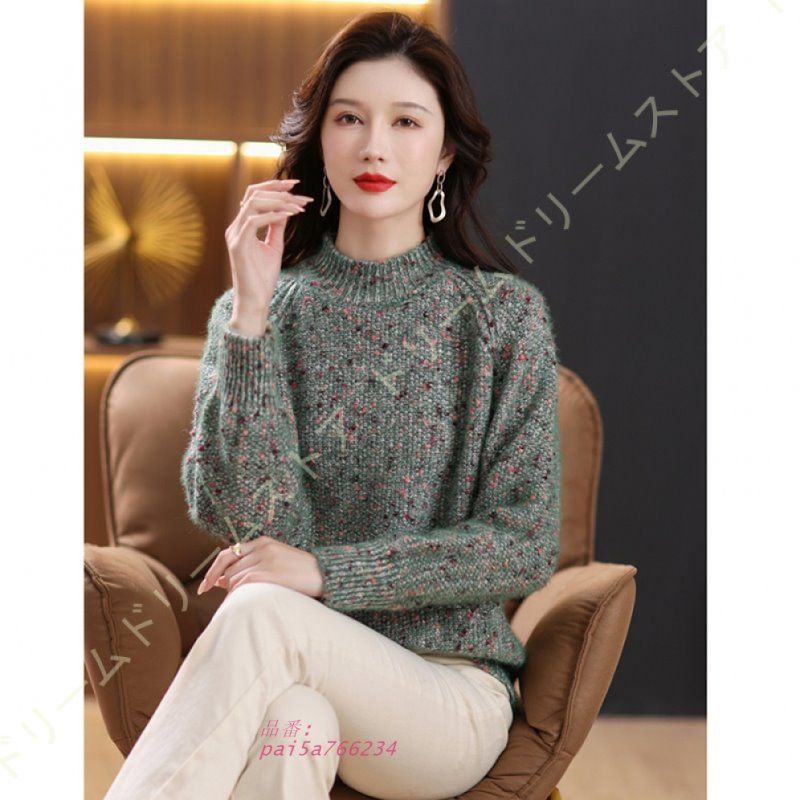 レディース セーター 冬服 トップス 厚手 ニットカットソー リブニット ニットセーター カジュアル タートルネック ハイネック クリスマス ゆったり 可愛い kni4a212838