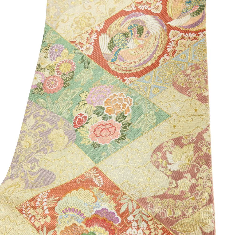 袋帯 六通柄 吉祥文様 正絹 金銀糸除く 金糸 ゴールド系 マルチカラー フォーマル 花唐草 日本伝統模様 和装 呉服 和服 きもの レディース 女性 WWW_NICORILABO_COM