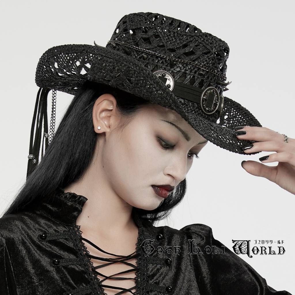 WS-675MZ-BK バックドロスト 麦わら風 ウエスタン カウボーイ ハット 帽子 ファッション ゴシック ゴスロリ パンク ロック ビジュアル系 V系 モード系 地雷系 サブカル コスプレ ライブ ステージ 舞台 仮装 SM サイバー ハロウィン 衣装 WWW_NICORILABO_COM