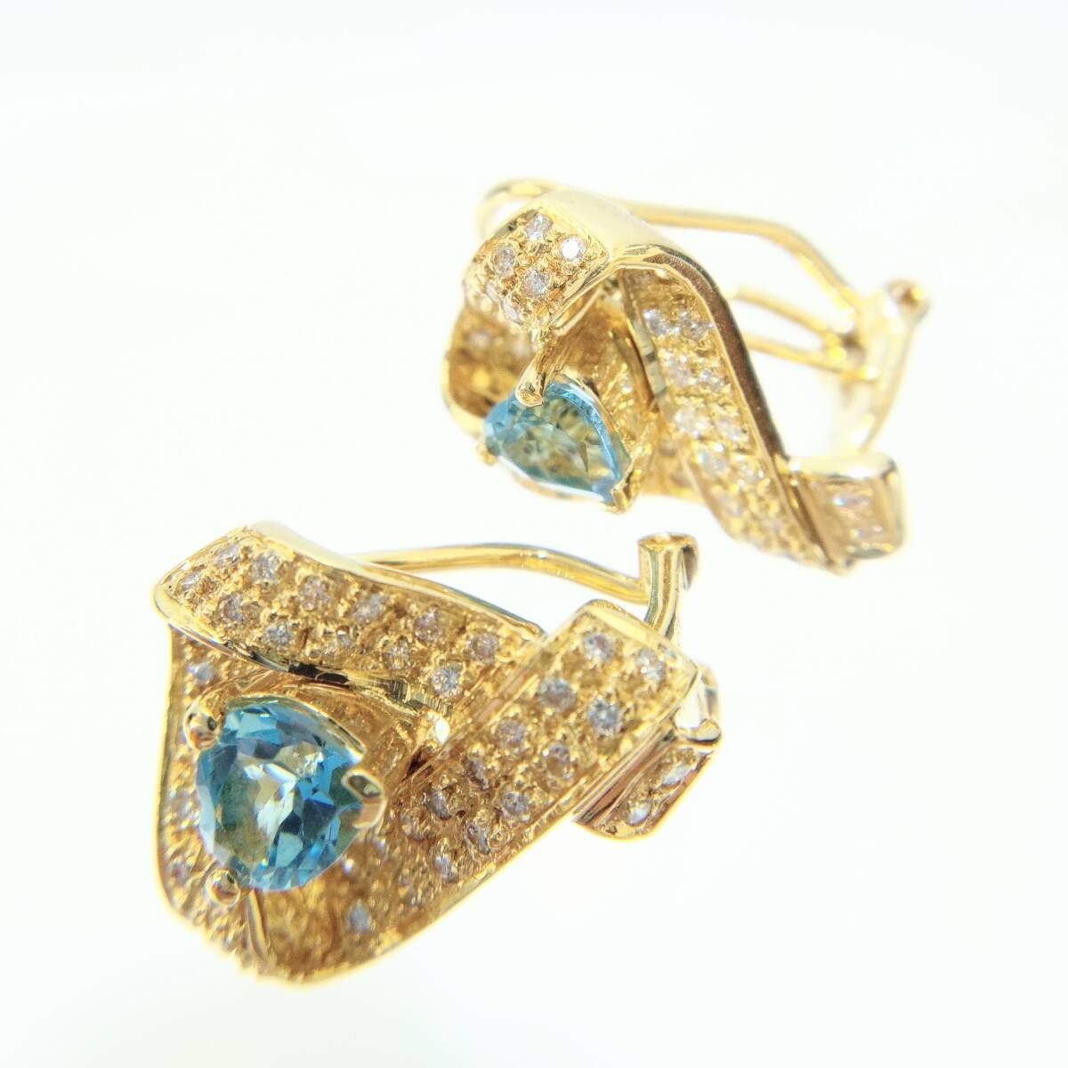 鑑別書付き 天然ブルートパーズ 各0.60ct 天然ダイヤモンド 各0.22ct K18 ピアス兼イヤリング 8.7g ハート メレダイヤ リボン コスチューム WWW_NICORILABO_COM