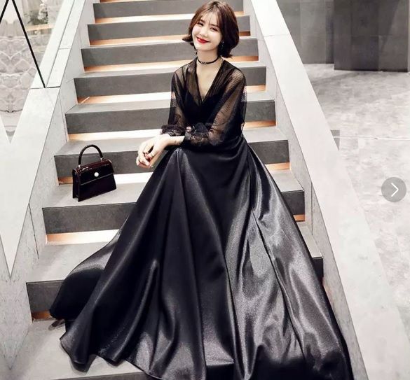 パーティードレス ロング 袖あり ロングドレス 黒 結婚式 お呼ばれ ドレス 演奏会 袖付き 花嫁ドレス フォーマルワンピース Aライン ボリューム袖 卒業式 入学式 シンプル 20代 30代 40代 DZ30